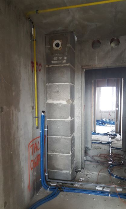 posameznih plinskih grelnikov po jašku med dimno cevjo in zunanjim betonskim plaščem. Plinski grelniki tako delujejo neodvisno od zraka v prostoru. Dimni plini se iz dimnika odvajajo z nadtlakom.
